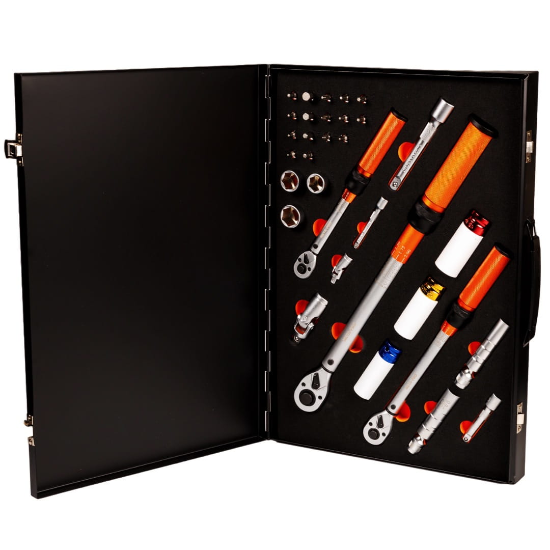 4Цей набір 3 динамометричні клавіші з багатим обладнанням є ідеальним інструментом для точного затягування гвинтів і гайок з певним моментом. Висока якість та широкий спектр аксесуарів роблять його набором для професіоналів та вимогливих користувачів .
