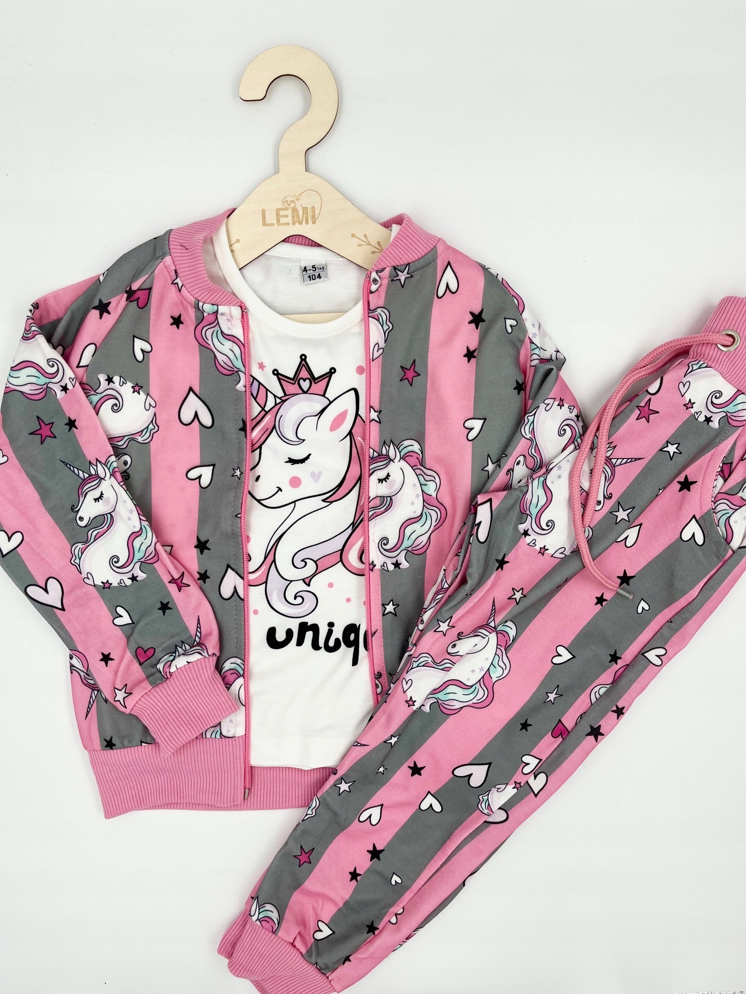 Набір від турецької фірми. Бавовна преміум якості. Світшот єдиноріг, манжети внизу світшота та на кінці рукавів. У комплект входить блузка з довгим рукавом і єдинорогом, світшот на блискавці та спортивні штани з регульованою талією та кишенями. Можна носити в комплекті або в інших комплектах.