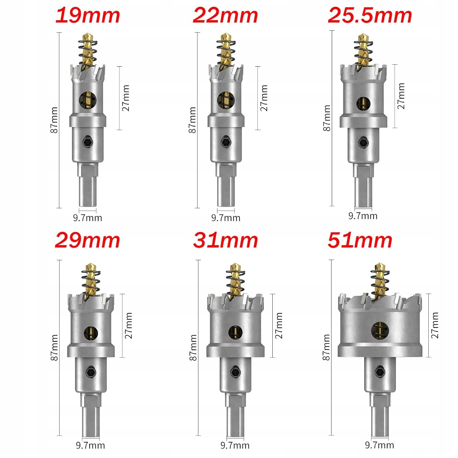 Набір діркових пилок TCT для металу з твердосплавним наконечником 19-51 мм, 6 шт