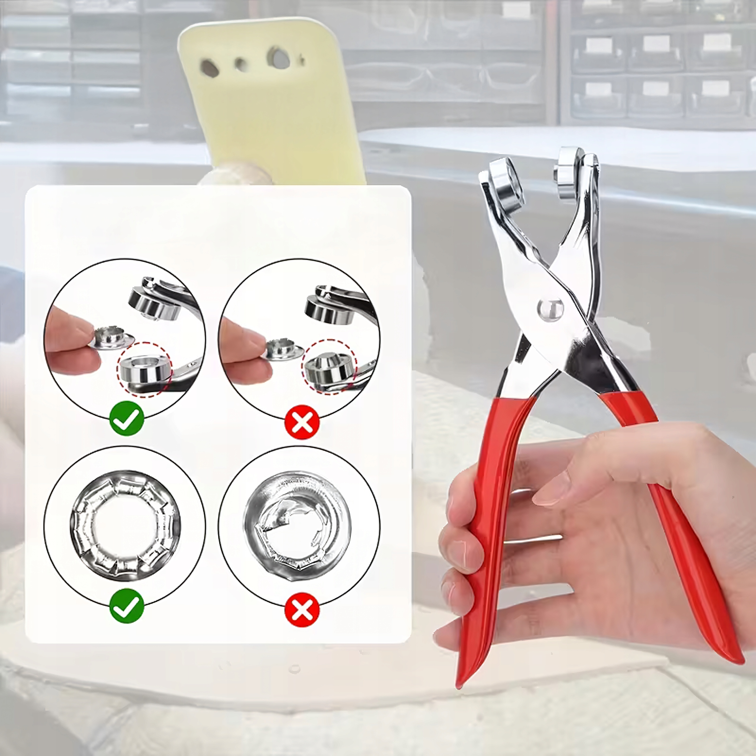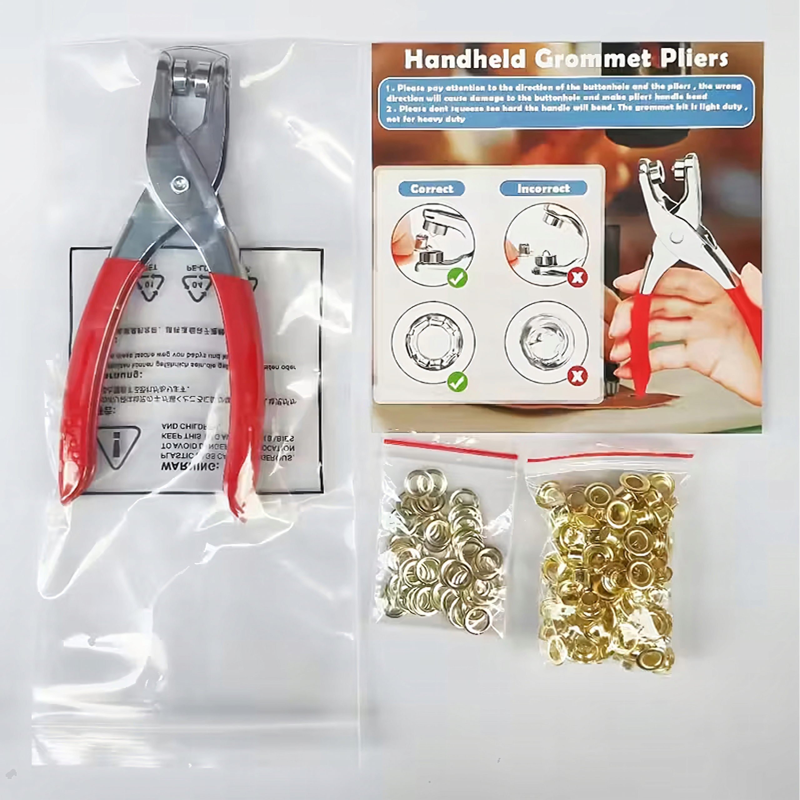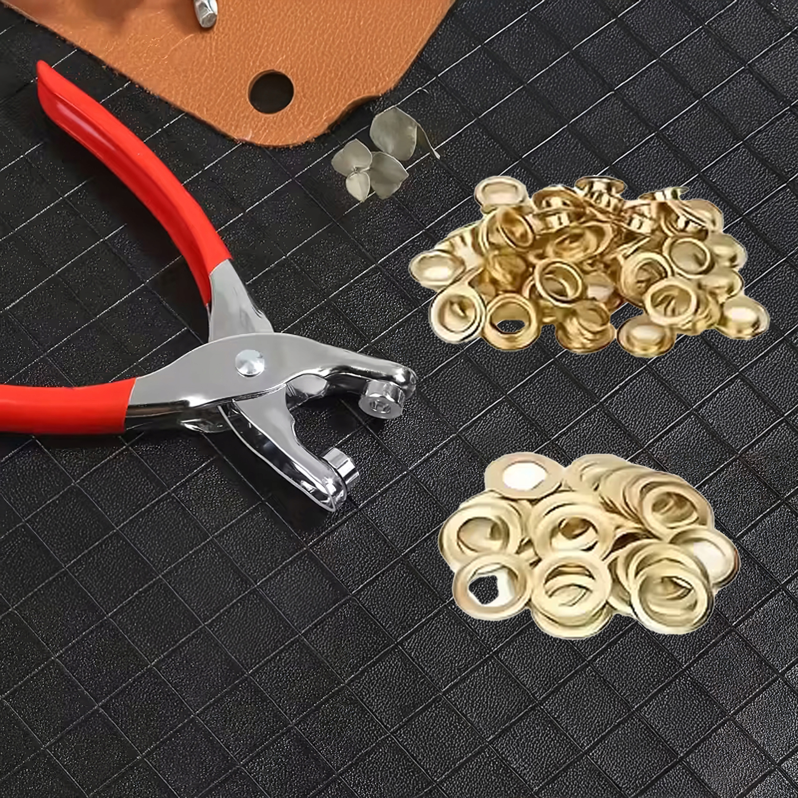 Повний набір – плоскогубці + 100 золотих люверсів.