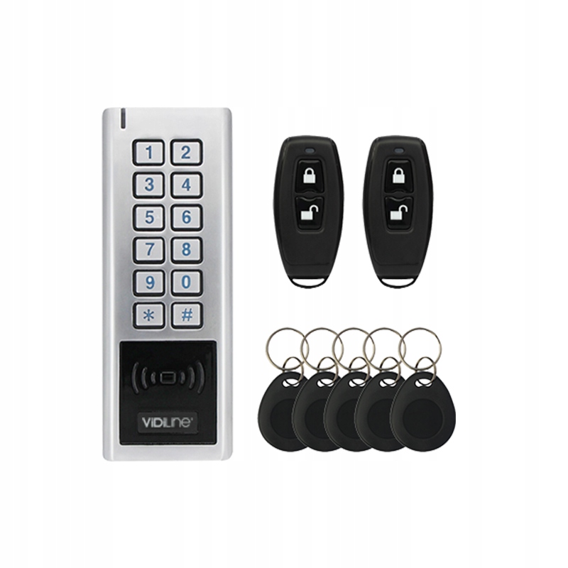 VIDI-AC4-CS-WKIT2-це комплект управління бездротовим доступом. Набір можна встановити на подвійних стрічках, доставлених у коробці. Упаковка містить бездротову клавіатуру, бездротовий замок (установка для дерев’яних/металевих/скляних дверей або кадрів). Для внутрішніх застосувань. 4
