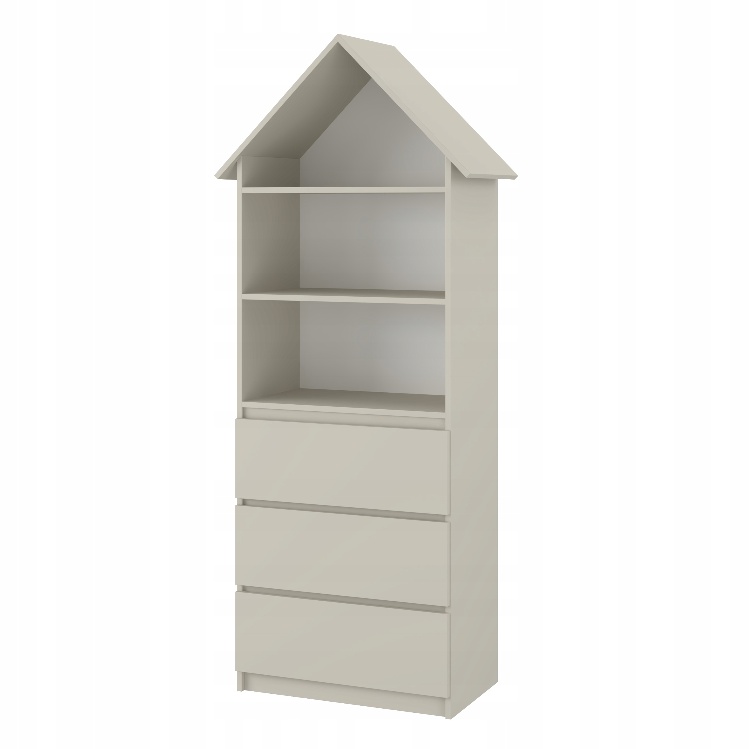 -це практичний і функціональний предмет меблів, який знайде його застосування в кімнаті кожного дитячого. Ергономічні розміри забезпечують безкоштовні меблі кімнати. Комод виготовлений з ділянки з ділянки білого кольору, закінченого шпоном. Він складається з трьох ящиків, встановлених на путівників, які були обладнані обмежувачами для запобігання повного розширення.