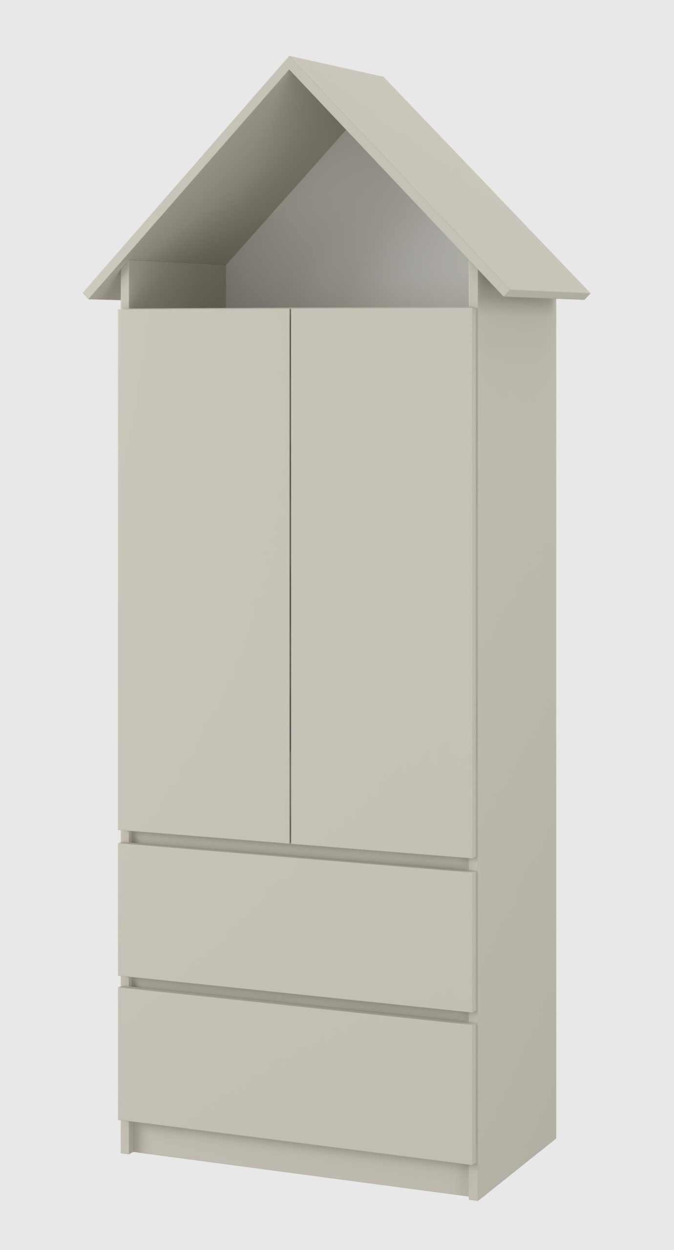- практичний і функціональний предмет меблів, який знайде своє місце в кожній дитячій кімнаті. Ергономічні розміри забезпечують вільне облаштування приміщення. Шафа виготовлена з ДСП білого кольору, оброблена шпоном. Шафа має рейлінги зверху і ящики внизу, всередині немає додаткових полиць
