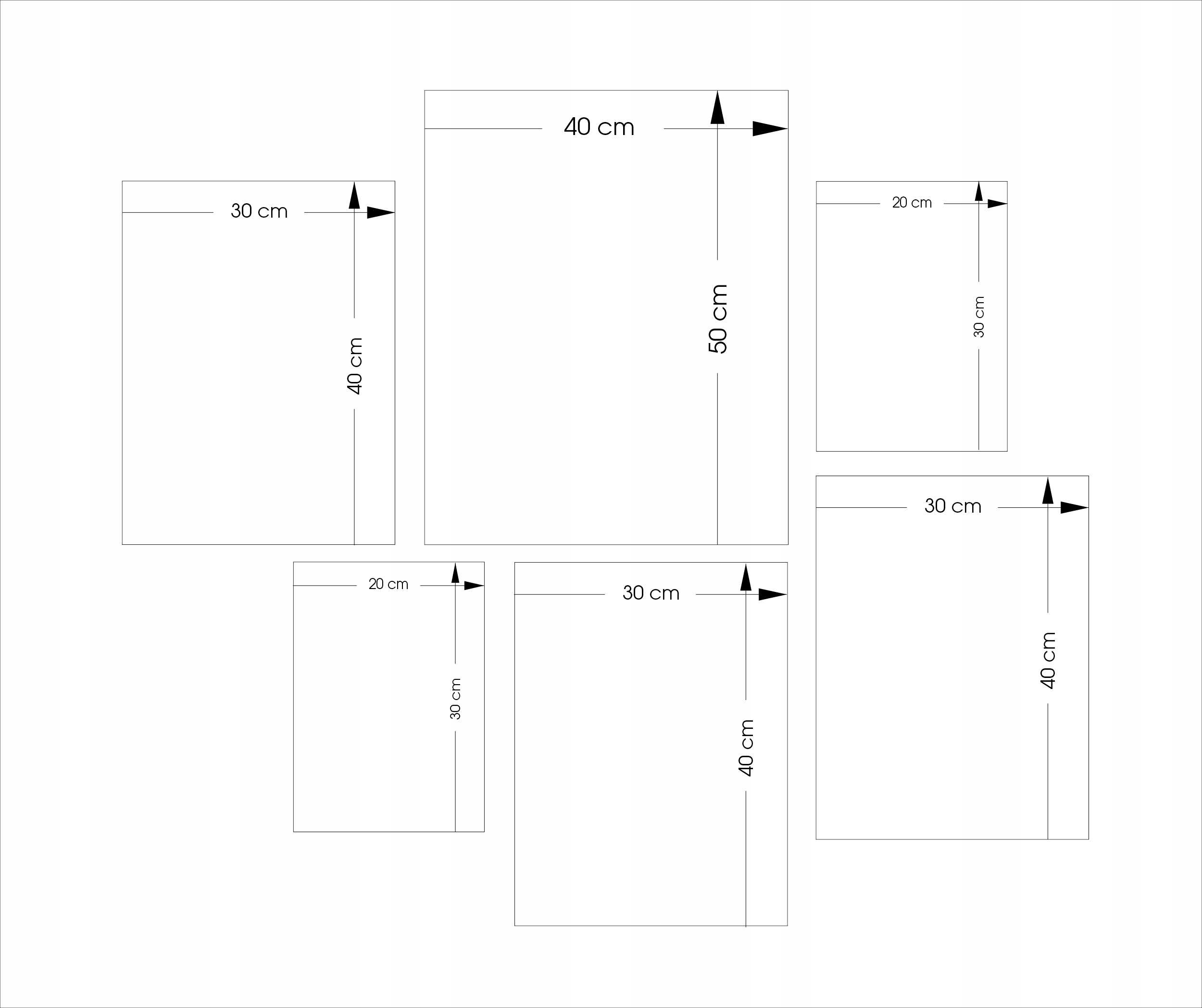 ✅ Розміри окремих деталей: 3x 30x40 см, 2x 20x30 см і 1x 40x50 см