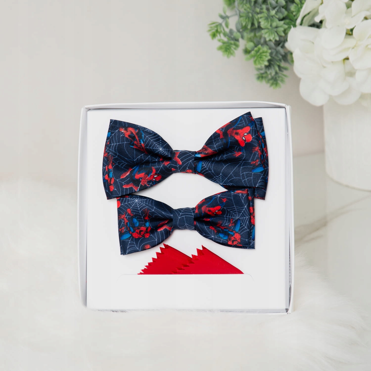 Мушка — це позачасовий модний тренд. Це ідеальне доповнення до офіційного вбрання. Набір тато-син - відмінне рішення для хлопчика, який хоче бути схожим на свого тата. Метелики з мотивом героя коміксів Людина-павук. Вони чудово підійдуть як доповнення до будь-якого вбрання на будь-якому важливому святі.