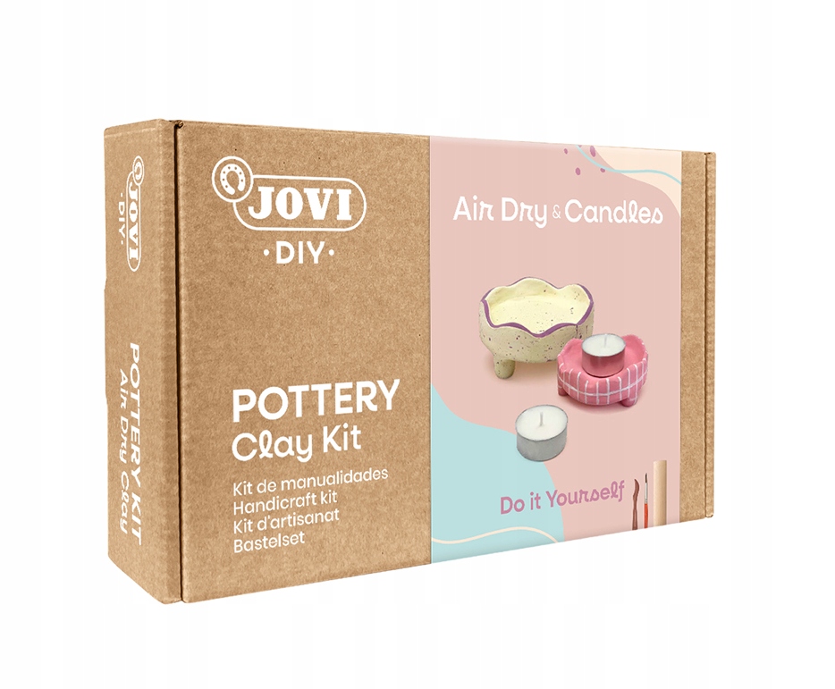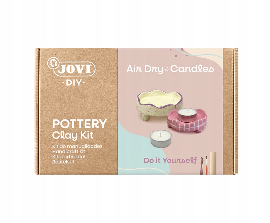 Пориньте у світ творчих розваг із повним набором кераміки JOVI! Цей набір є ідеальною пропозицією як для дітей, так і для дорослих - без необхідності мати піч, гончарний круг чи спеціалізовану майстерню. Щоб створити унікальні роботи з глини, вам не потрібно мати досвіду. Все, що вам потрібно, в одній коробці!