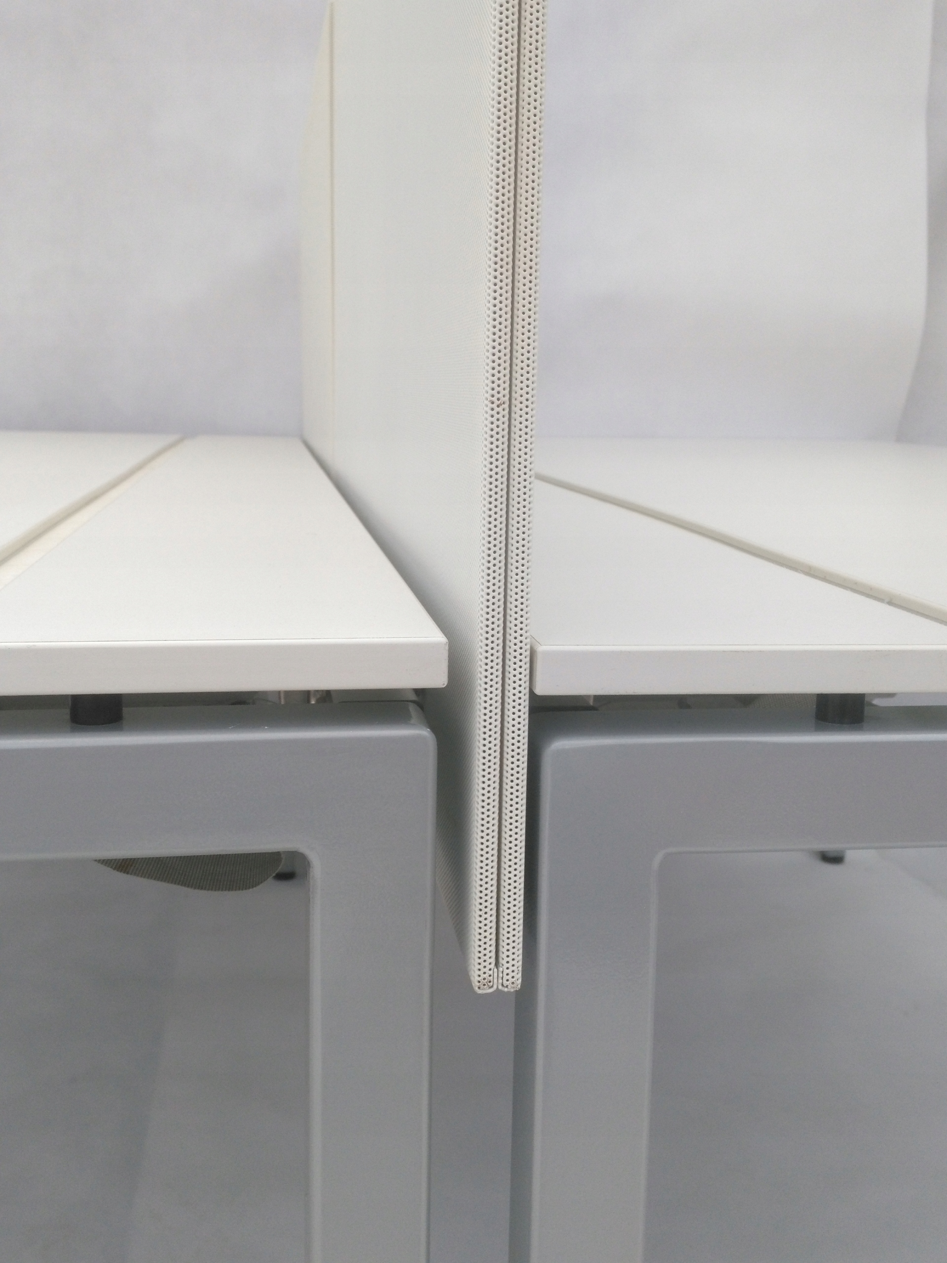 Екран для столів німецької компанії VS виготовлений із суцільної металевої пластини білого кольору. Кріплення здійснюється за допомогою спеціальних тримачів/підвісів. Жалюзі дозволять вам відгородити робоче місце, зберегти власний простір і приватність.