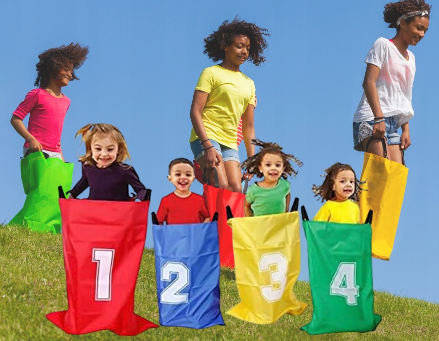 - 4 x мішки для стрибків (66 x 50 см заввишки), міцний нейлоновий матеріал