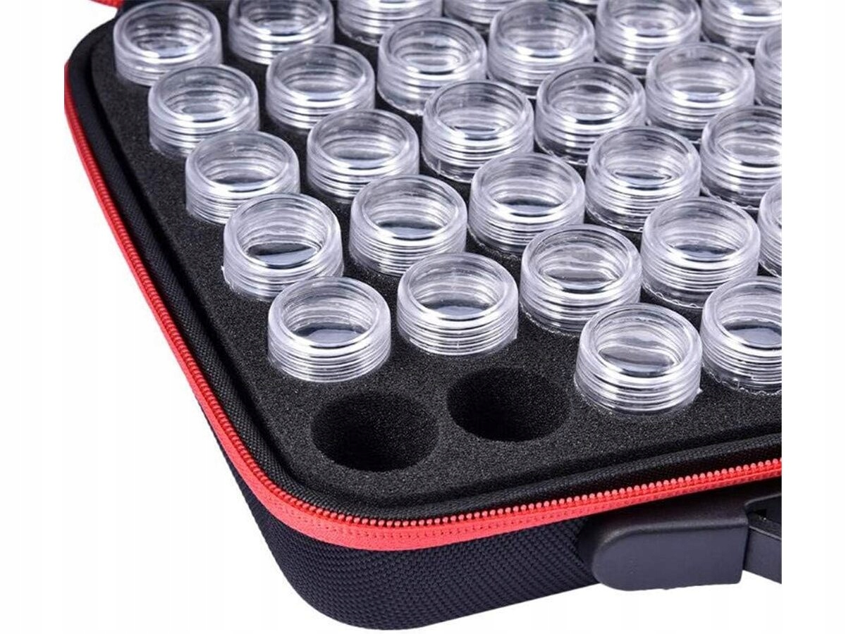 Органайзер в зручному футлярі на блискавці містить 60 окремих контейнерів. Контейнери знімні і кожен має свій замок. Ємності не перекидаються завдяки поролоновому наповненню валізи. Виріб ідеально підходить для зберігання алмазів для наклеювання алмазної вишивки. Ми розділяємо окремі елементи на кольори та дотримуємося порядку під час гри.