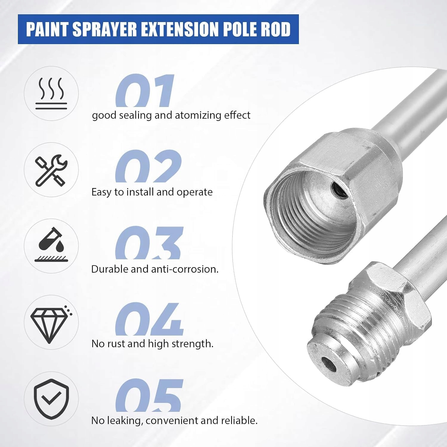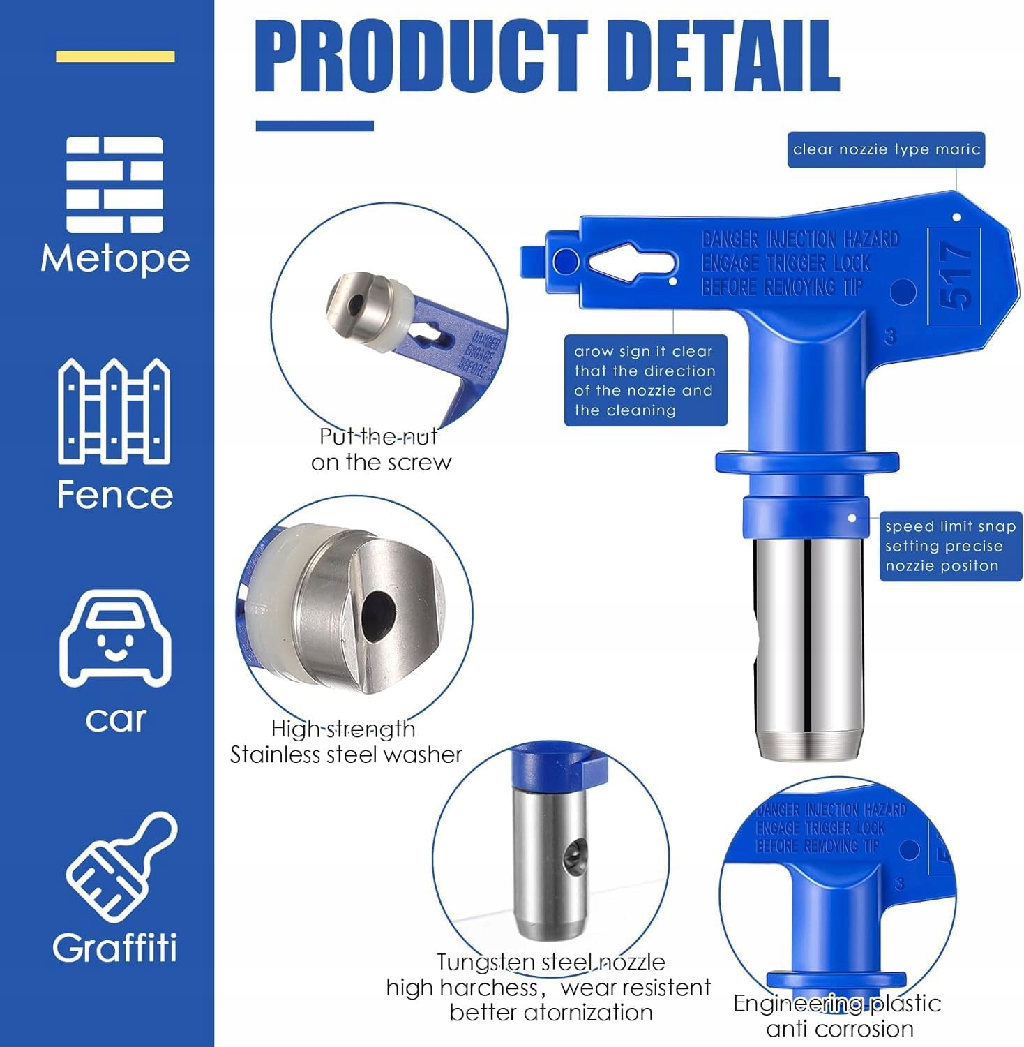 ✅ Компоненти в комплекті: 1 x 15 м шланг для безповітряного розпилювача фарби, 2 x подовжувач пістолета для безповітряного розпилення (20 см і 40 см), 1 x пістолет для безповітряного розпилення, 5 x форсунок для безповітряного розпилення (313/415/517/517/519/521), 1 x захист форсунок для безповітряного розпилення, 5 × 60 сітчастого повсті
