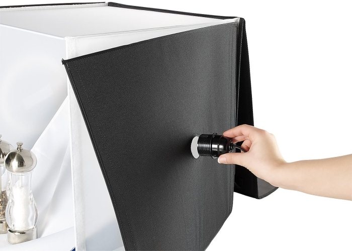 Крім того, це єдиний набір, де освітлювальні лампи встановлюються безпосередньо в структура безтіньового намету. Завдяки цьому все світло направляється всередину намету і ідеально розсіюється внутрішнім покриттям. Нам не потрібно турбуватися про недоекспонування об’єкта, тому що лампи були спеціально розроблені та підготовлені для такого розміру набору, забезпечуючи ідеально підібране освітлення.