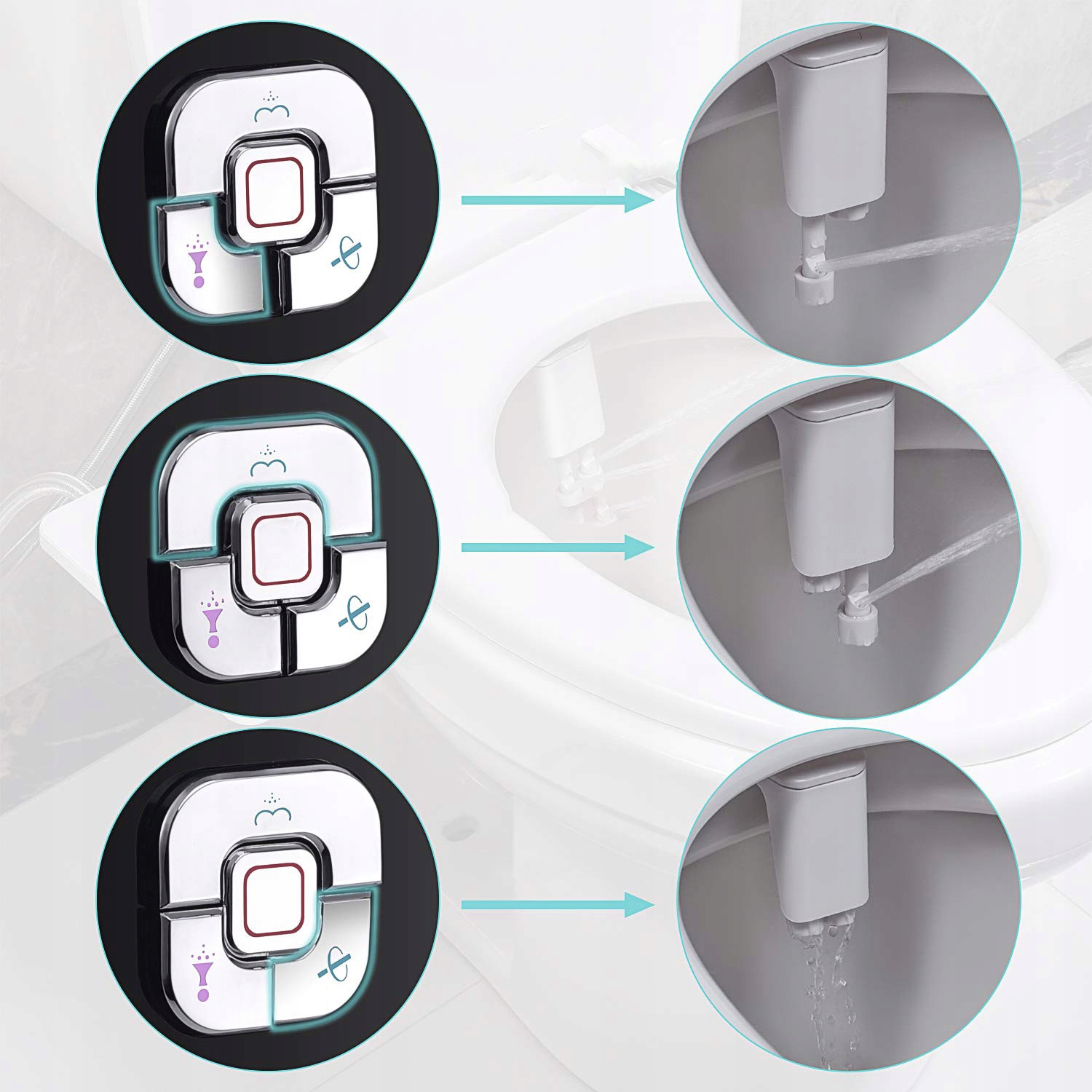 Регульований потік води: Регулятор тиску води дозволяє регулювати тиск води, забезпечуючи комфорт і зручність використання, пропагуючи здоровий спосіб життя. Люди похилого віку та діти також можуть легко використовувати біде для досягнення ідеальної інтенсивності.