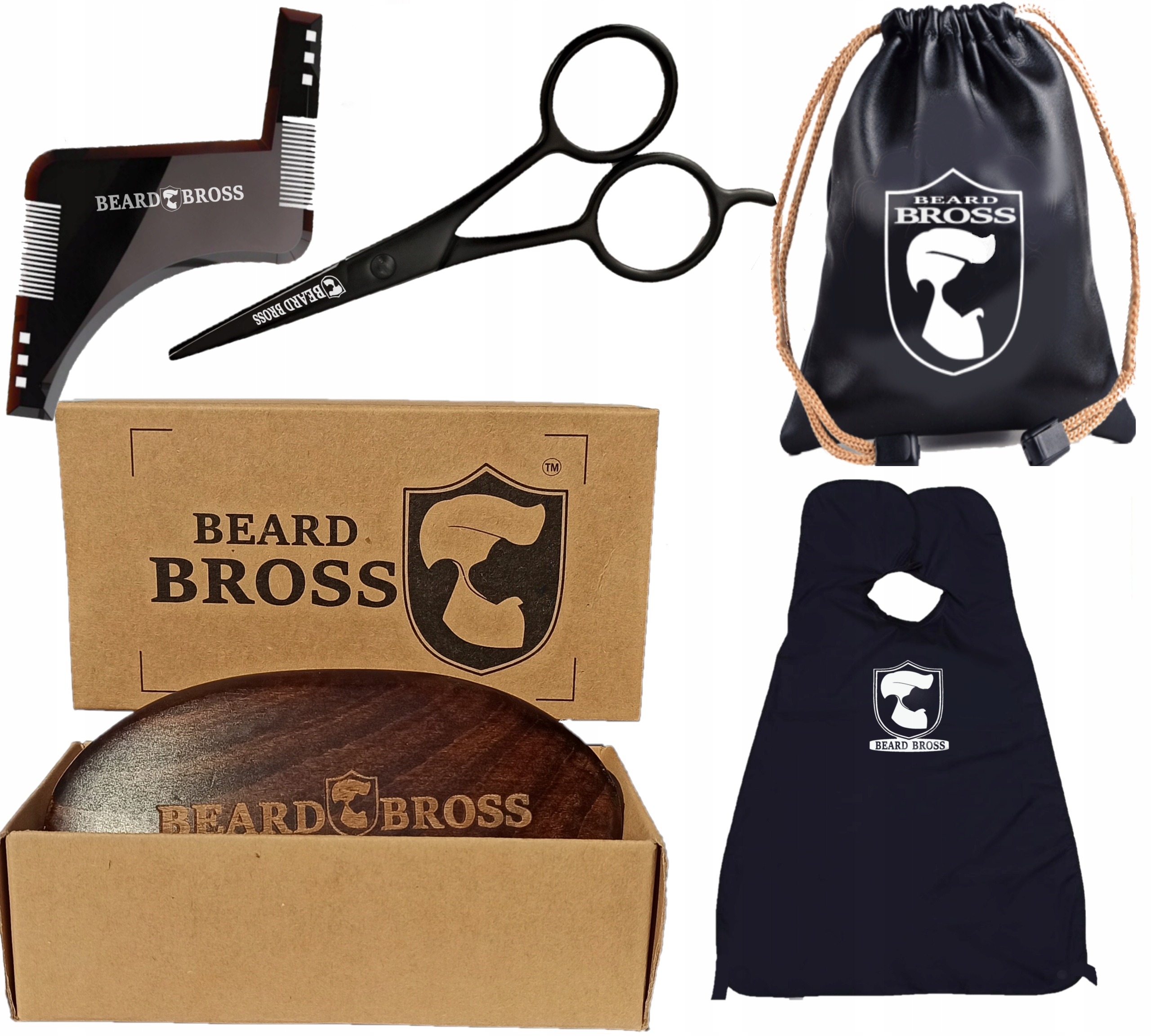 Чорна накидка BEARD BROSS – ще один елемент комплекту. Виготовлений із поліефірної тканини, яка не захоплюється волоссям, із регульованою застібкою-липучкою та присосками, він допоможе вам підтримувати бороду чистою після догляду.
