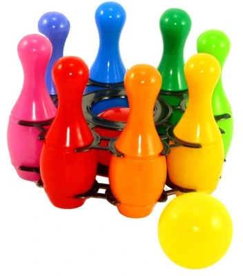 ✅ Гра для дітей містить 8 різнокольорових міні-кеглів для боулінгу, дві кулі