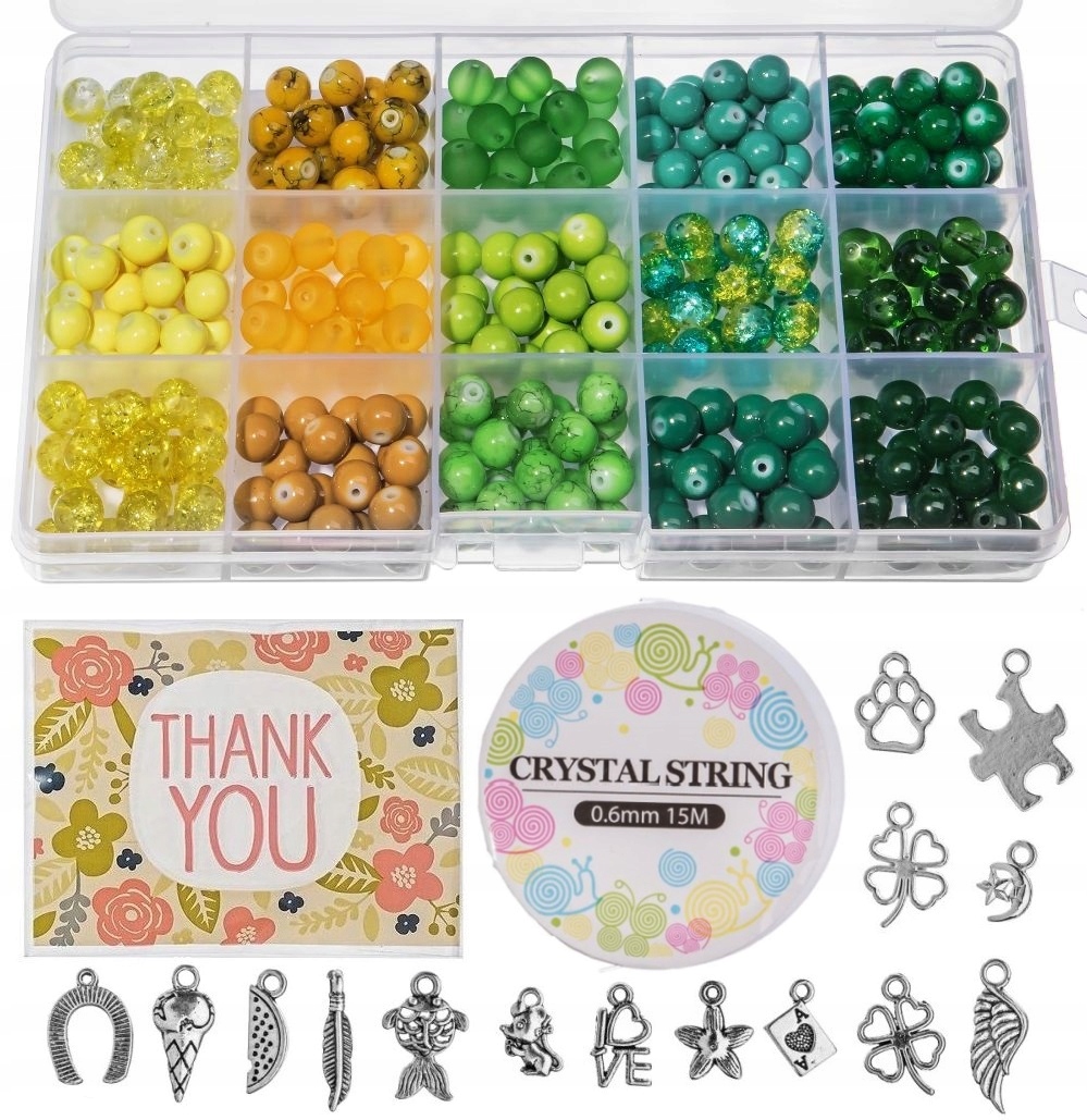 Набір для виготовлення браслетів улюбленим кольором. Набір включає організатор, наповнений 8 -мм скляними намистинами, підвісками з металевими приралами, клітинами та рулоном еластики 10 метрів. Наймодніші браслети в цьому сезоні.