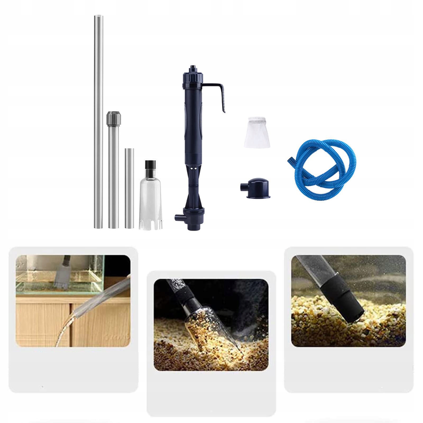 🐟 Електричний пилосос для мульчування 3 в 1: електричний пилосос для акваріума оснащений трьома режимами (замініть гравій водяного фільтра), і багато функцій можна вільно перемикати. Ви легко очистите пісок, поміняєте акваріумну воду і видалите з акваріума бруд. (Примітка: цей набір не включає батарейки. )