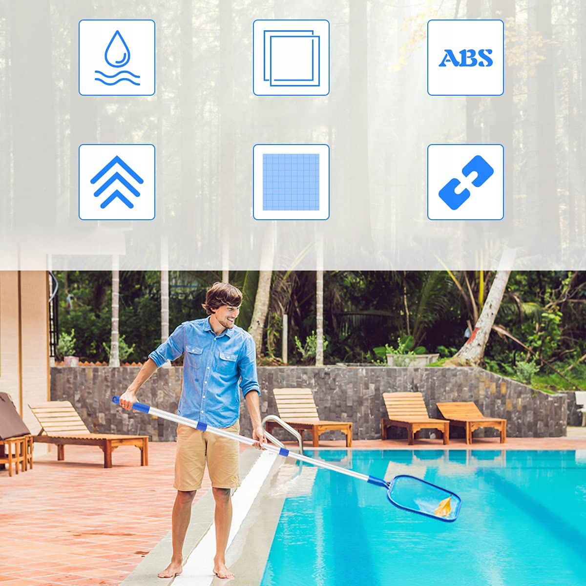 3⃣3 Ефективне очищення - Скімна сітка має дуже стабільну пластикову раму та сітку з дрібною сіткою. Пластикова рама робить сітку басейну дуже сильним і забезпечує високу стабільність та довговічність. Він швидко очищає бруд від поверхні води і залишає ідеально чисту воду.