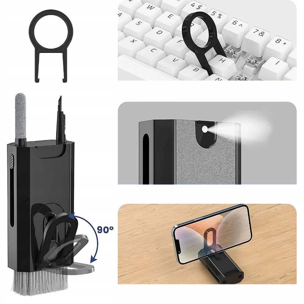 - Набір для чищення 8 в 1, включаючи ворсисту губку, щітку високої щільності, металевий наконечник, волокнисту тканину, яку можна мити, нержавіючу сталь спрей для пляшок, тримач для телефону, щіточка для чищення клавіатури та засіб для зняття ковпачків клавіш.