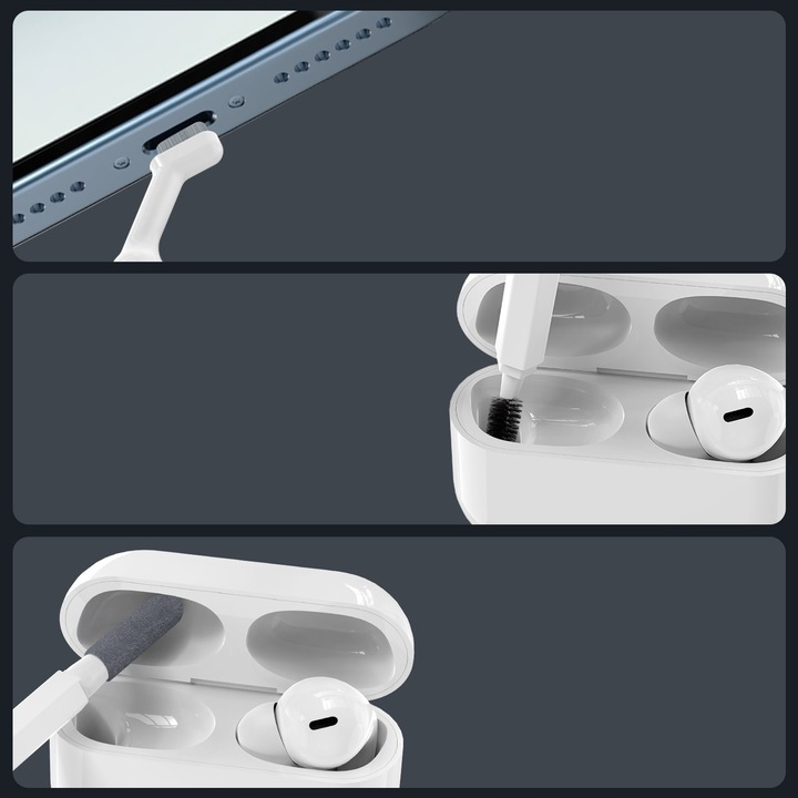 • Завдяки різноманітному вибору наконечників набір дуже практичний у будь-якій ситуації. Це може бути корисно під час подорожі чи вдома, його можна використовувати для очищення бездротових навушників і футлярів, клавіатури, камери, телефону та інших аксесуарів.