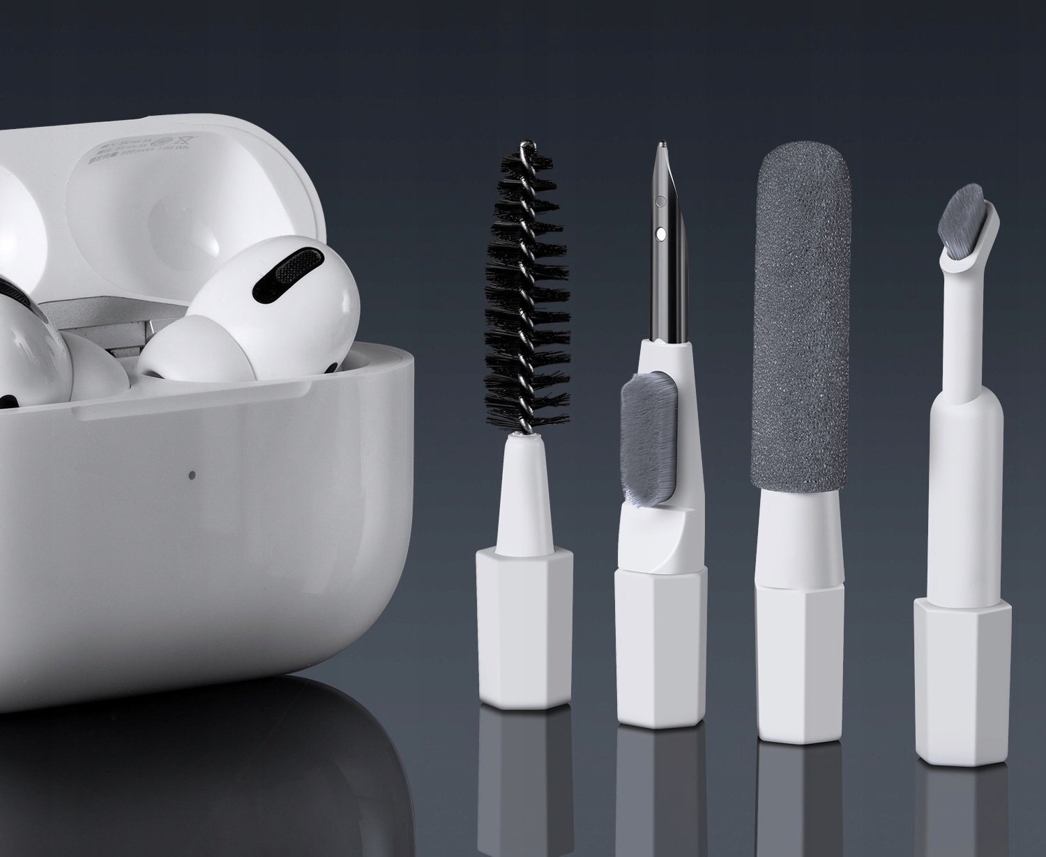 • наконечник із щіткою для чищення, серед іншого, відсік для зарядки навушників