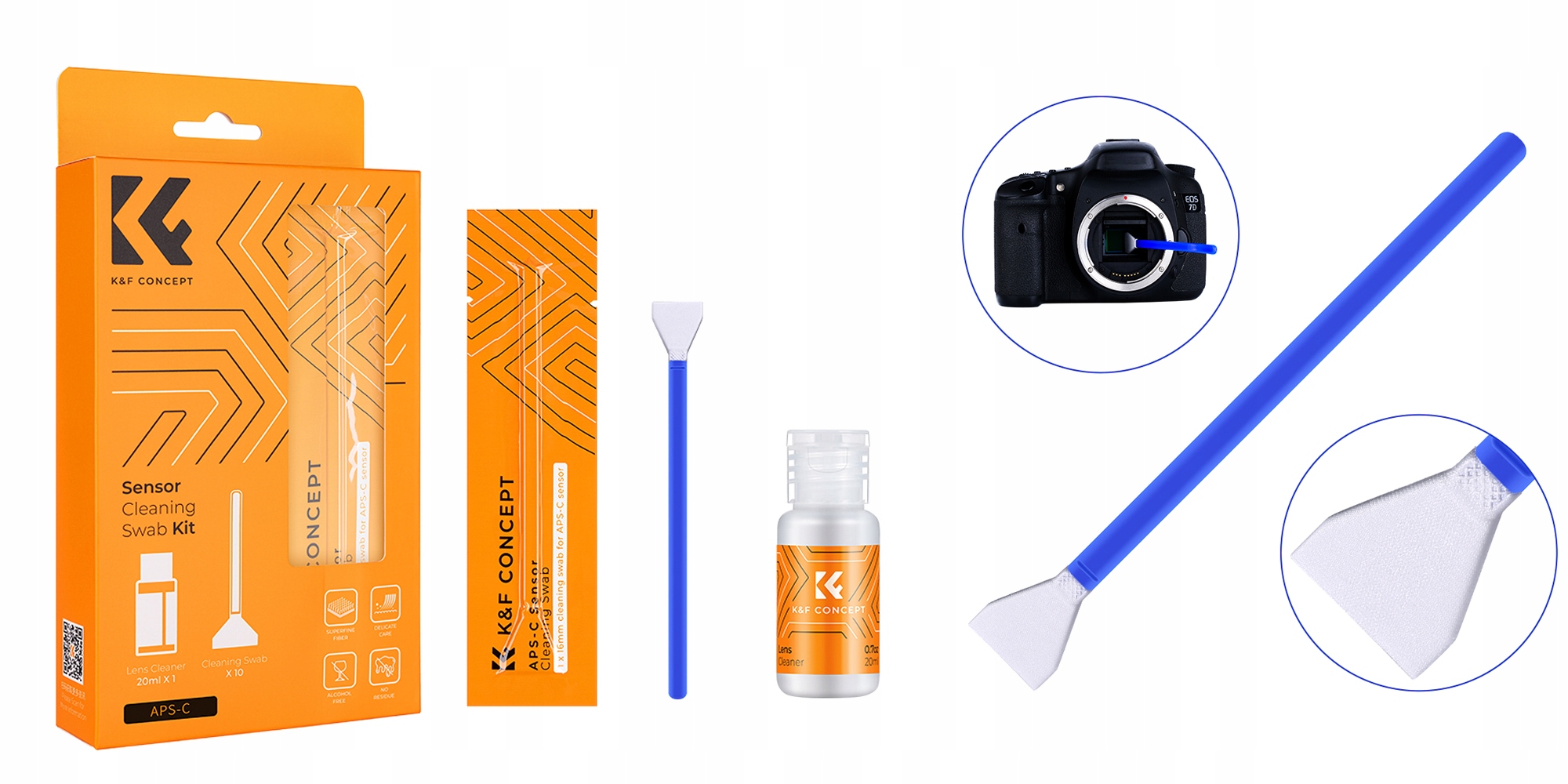 - модель: набір для очищення K&F Concept для набору тампонів для очищення сенсора APS-C