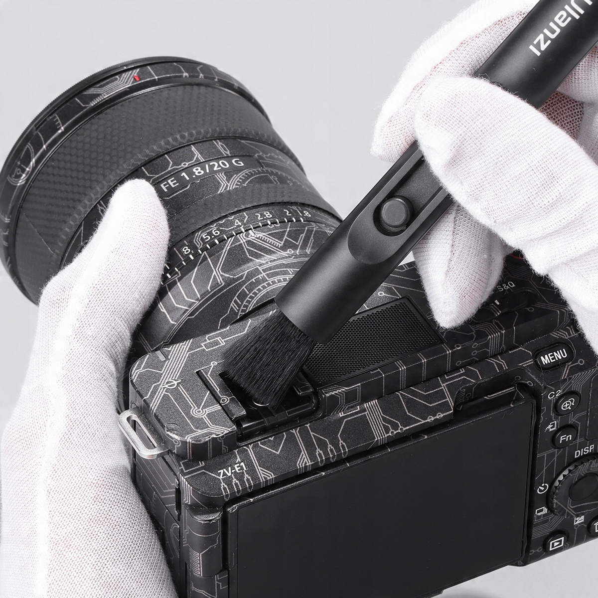 Виготовлена з високоякісного делікатного волокна, яке гарантує ретельне очищення навіть у важкодоступних куточках камери. Ручка складається з двох елементів. З одного боку, він має регульовану щітку для чищення, а з іншого боку, карбоновий наконечник, який дозволяє видаляти жирні забруднення та смуги з оптичних поверхонь.