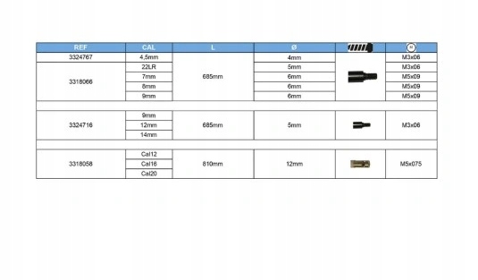 b>Набір готовий до використання і дозволяє чистити стволи гвинтівок 12-го калібру. Щітки є замінний.