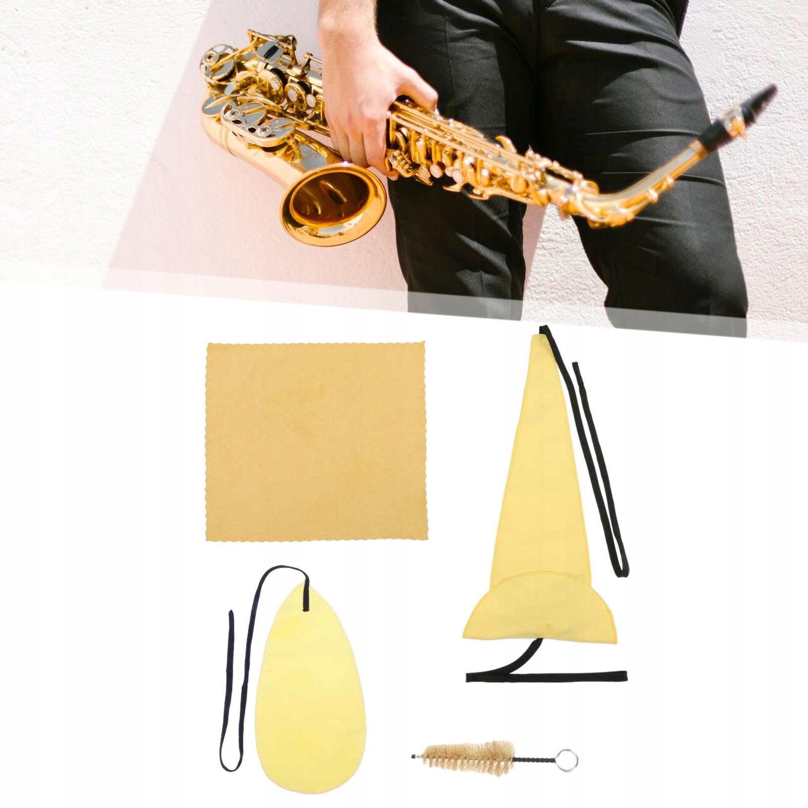 [Пакет]: набір для чищення саксофона, тривимірна тканина для чищення ремінця, серветка для чищення ремінця, серветка для витирання, щітка для мундштука.