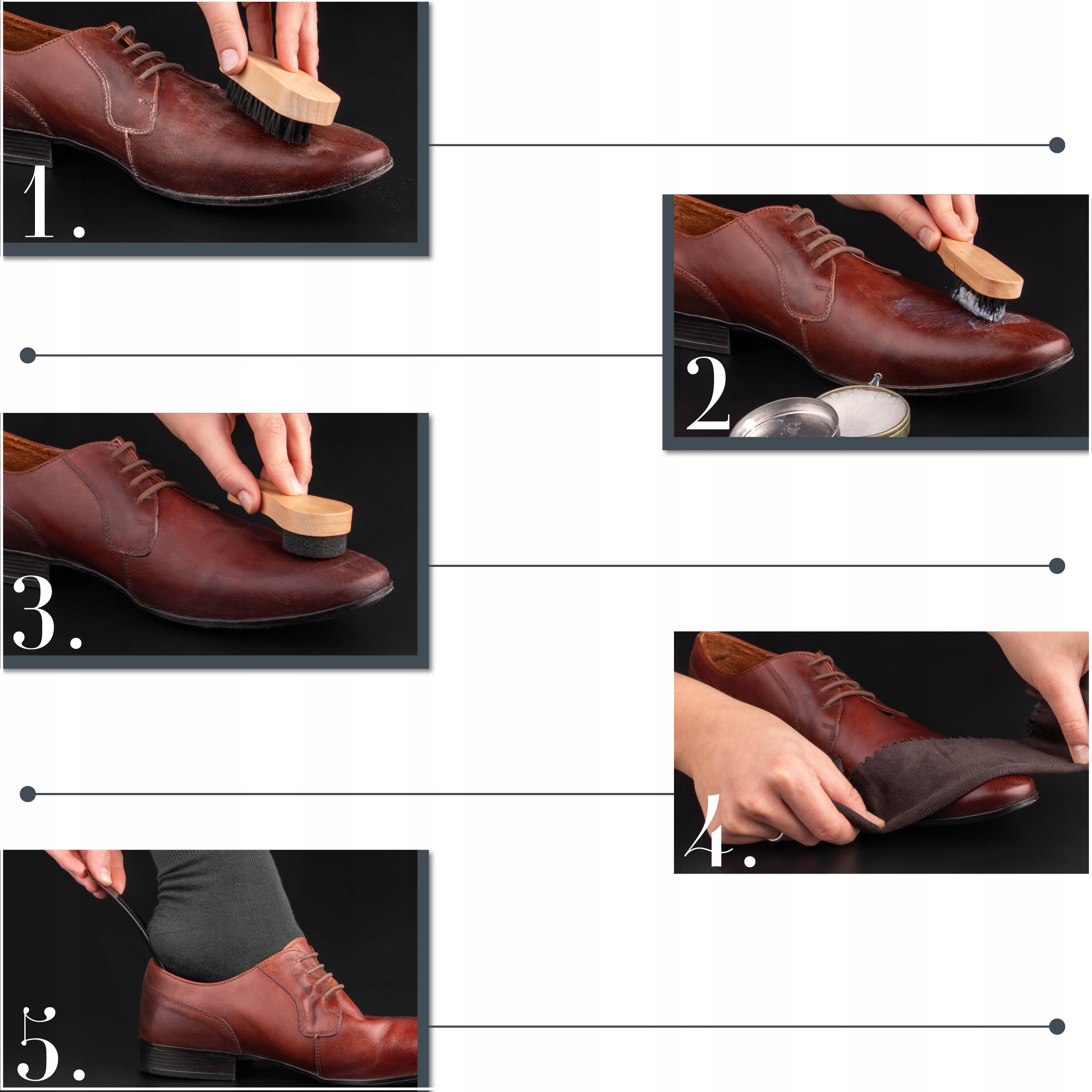 2️⃣Нанесіть пасту для догляду на поверхню взуття та залиште приблизно на 5 хвилин.
