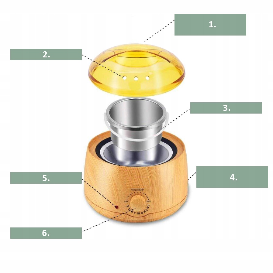 Кафе (3) ємністю 400 мл полегшує нанесення розігрітого воску на шкіру, не забруднюючи поверхню нагрівача та нагрівальний шар (4)
