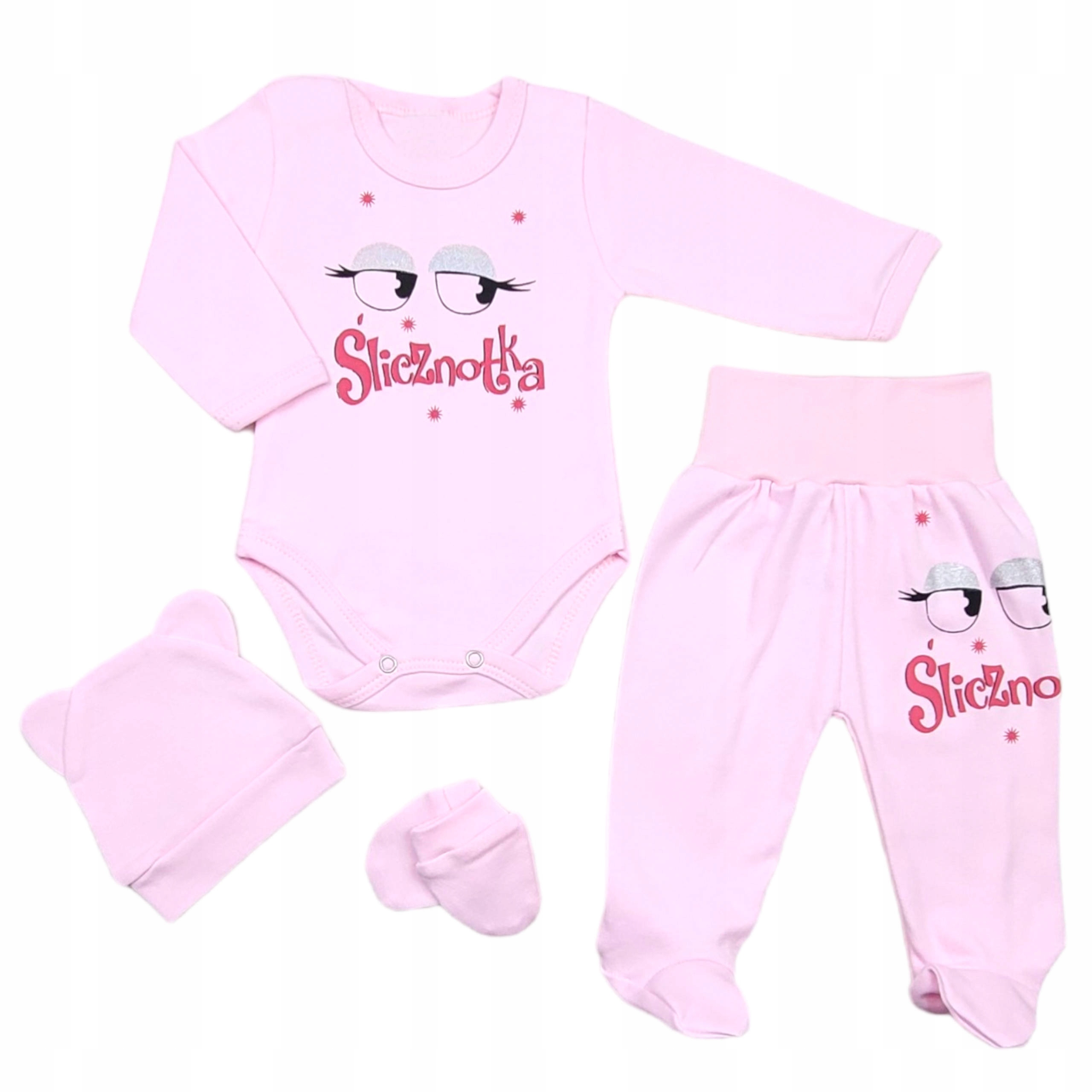 Layette дуже хорошої якості з м'якої та повітряної бавовни, безпечної для ніжного тільця малюка. На комбінезонах, каптанах, боді та комбінезонах є напис «Beautiful»що додає шарму та викликає посмішку на обличчях батьків та інших людей. Комплект виготовлений на 100% від польського виробника.