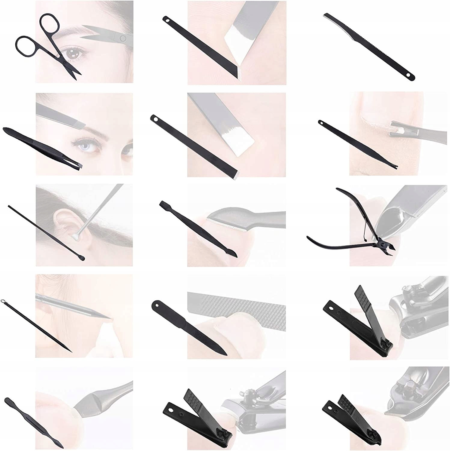 Весь манікюрний набір складається з 16 елементів, елегантний і міцний дизайн кожного інструменту разом з чохлом забезпечує тривале використання.