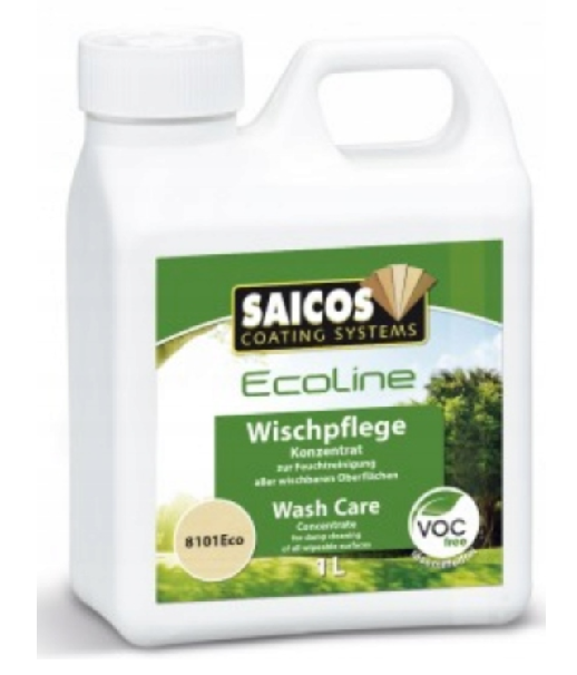 Saicos Ecoline Wash Care 8101 - це концентрат для миття дерев'яних підлог , безпечний для частого використання. Містить рослинні мила та натуральні добавки для догляду, концентрат ідеально поєднується з водою та дозволяє чистити без смуг і розводів. Saicos Ecoline Wash Care 8101 додатково освіжає поверхню та захищає від повторного забруднення. Концентрат Ecoline Wash Care призначений дляручного чищення внутрішніх поверхонь, однак, завдяки низьким піноутворюючим властивостям, його можна використовувати в професійних очисних пристроях.