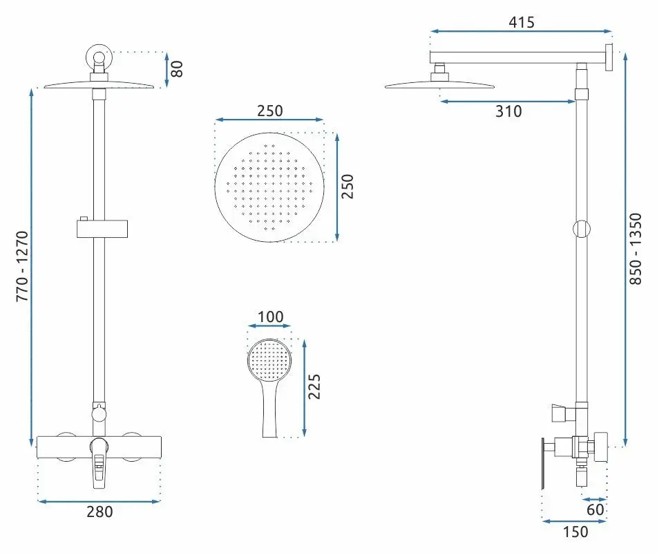 - В набір входить: Змішувач, душовий шланг з трубкою, тропічний душ, тримач для трубки