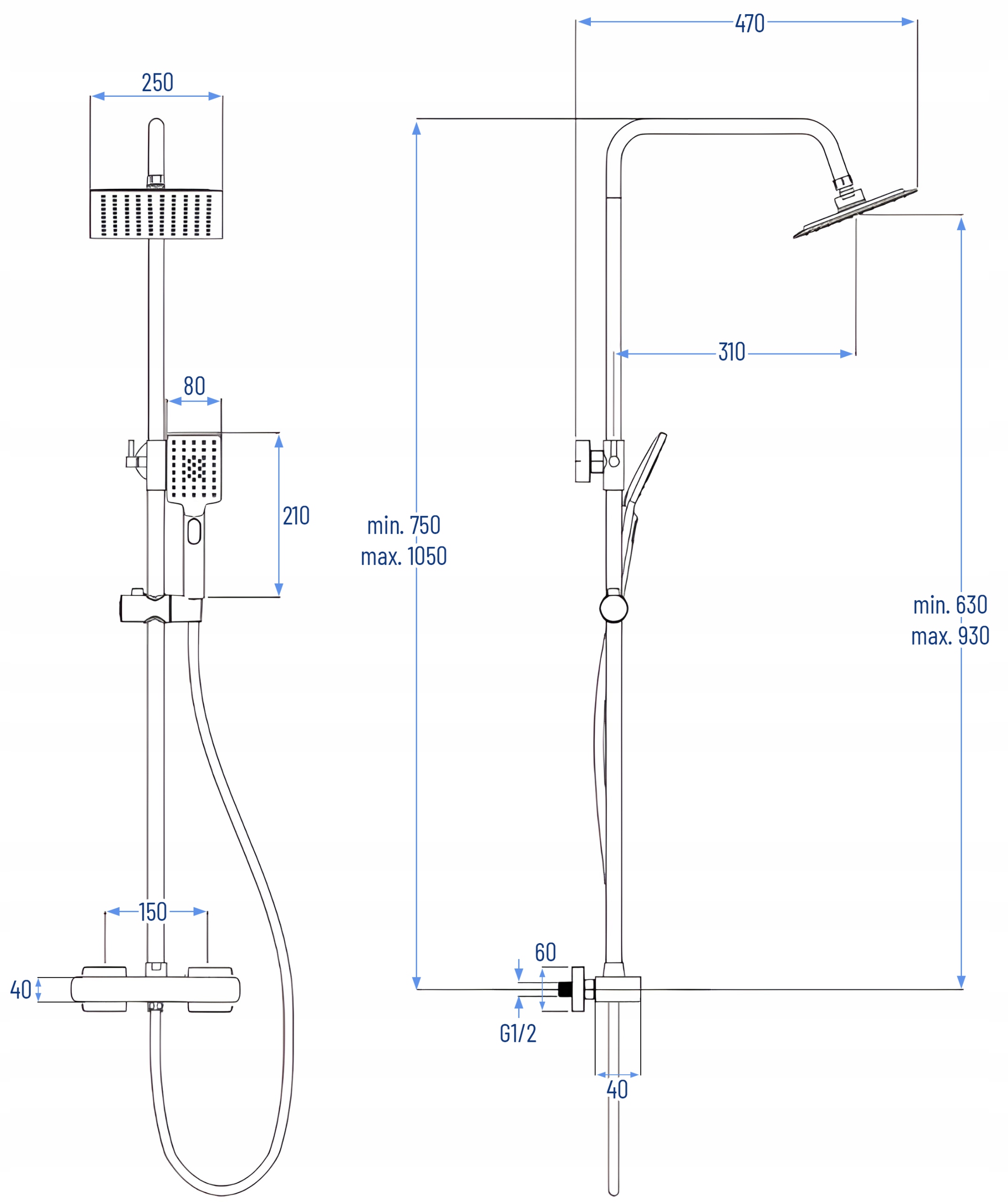 - душовий стовпчик з регульованим 75 см. Термостатичний акумулятор