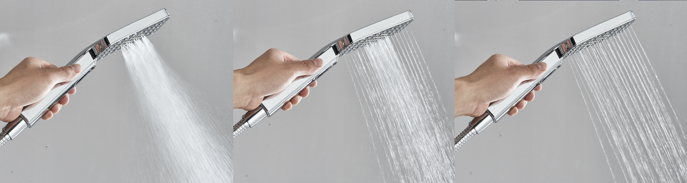 - Регулювання кутової води, розташованої внизу акумулятора. Прикріплений душовий шланг гнучкий і стійкий до руйнування, що полегшує його використання.