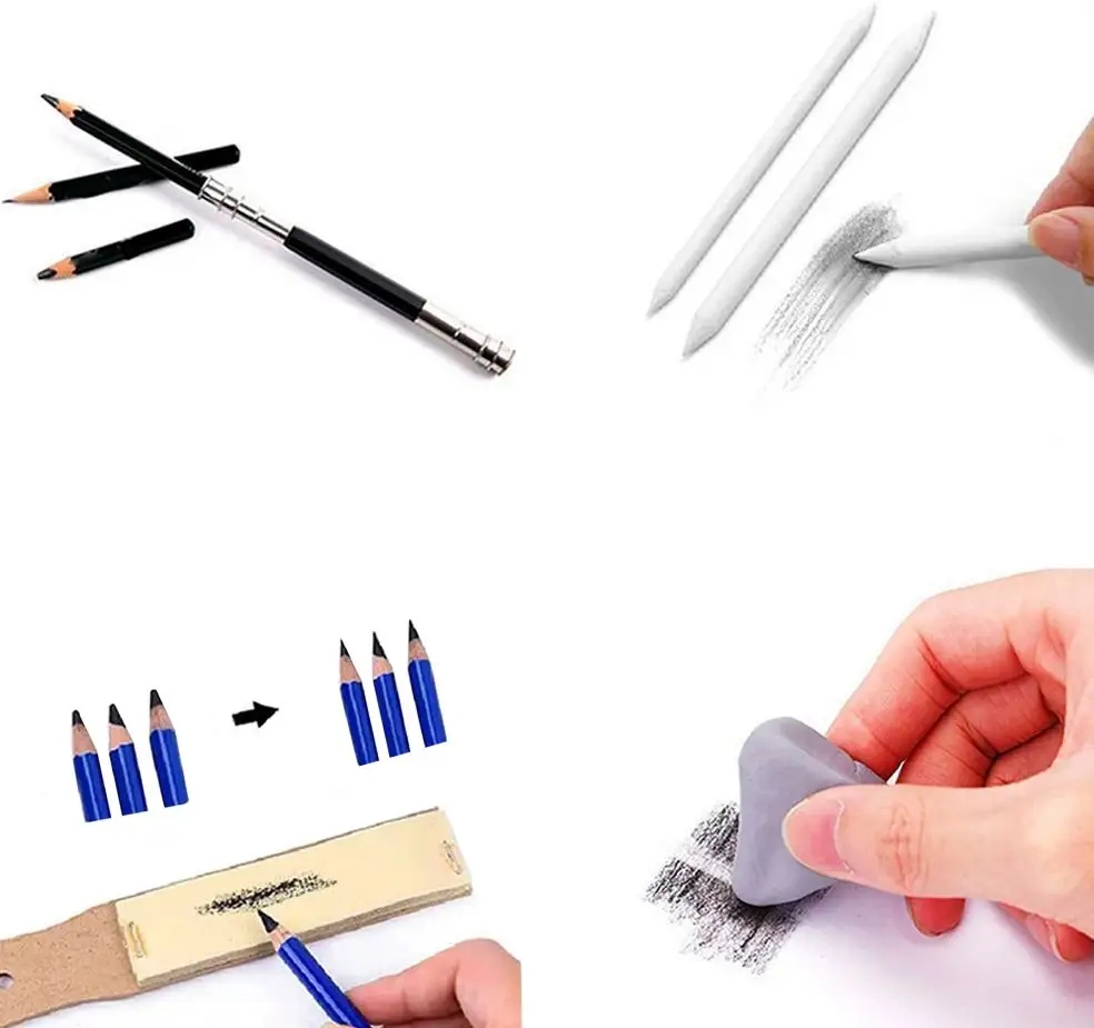 - 12 олівців для малювання (2H / 3H / 4H / 5H / HB / B / B2 / B3 / B4 / B5 / B6 / B8)