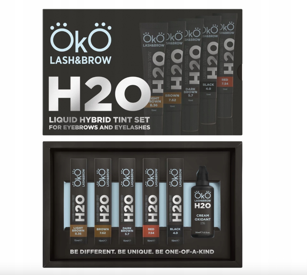 Унікальна формула фарби Liquid Hybrid Tint і Cream Oxidant 3% із серії H2O від OKO Lash&Brow дозволяє регулювати інтенсивність ефекту фарбування завдяки співвідношенню змішування. Пропорції можуть варіюватися від 1:1 до 1:3.