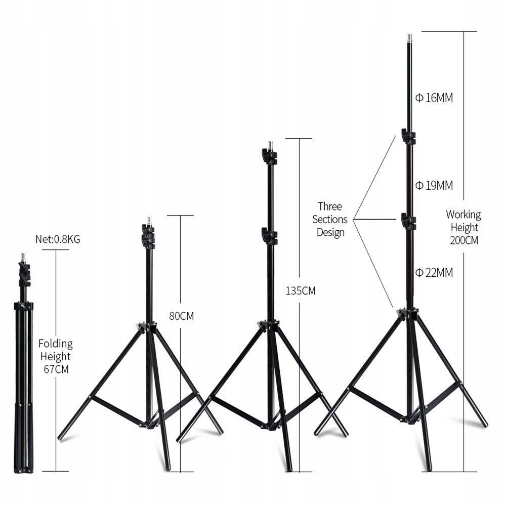 Є три барвисті фони на вибір. Полотна виготовлені з бавовни зеленого, білого та чорного кольорів. Вони легко кріпляться до складної підставки за допомогою 6 затискачів. Полотна мають розміри 1,8×2,8 м.