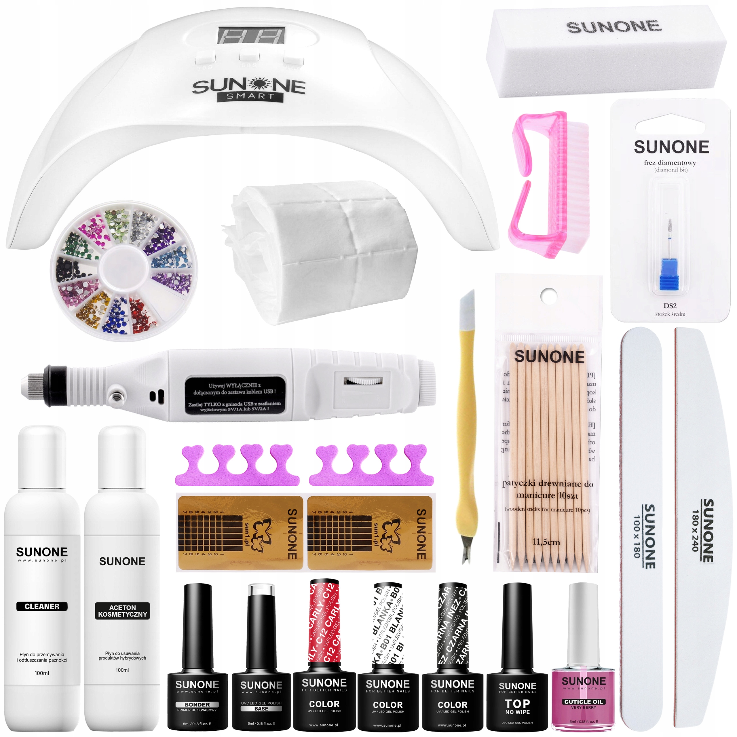 SunOne S03 Hybrid Set - професійний набір для виконання гібридного манікюру. У набір входить не тільки лампа, а й фрезер з конусом і косметика, без якої манікюр був би неповноцінним.