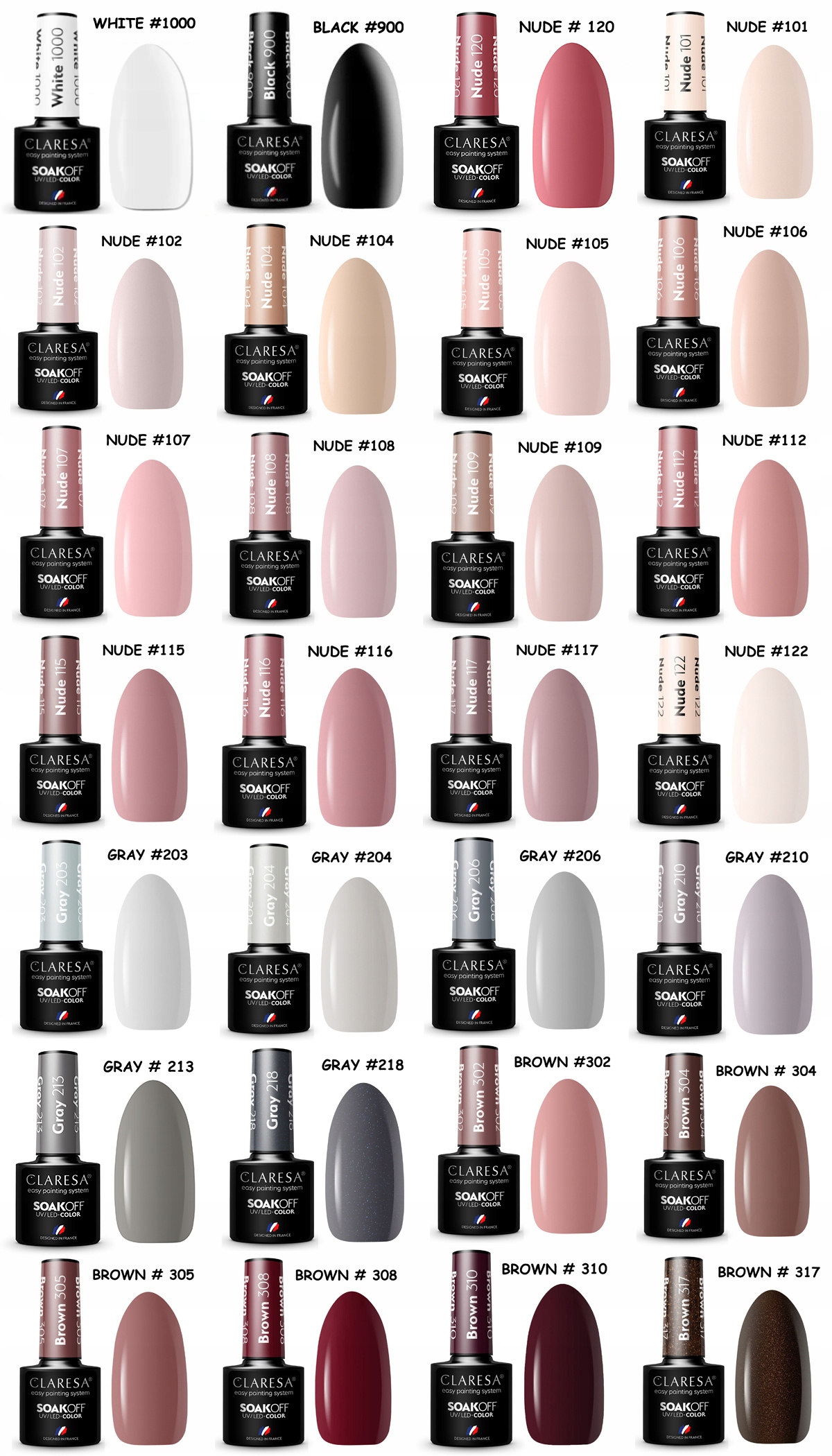 Гібридні лаки для нігтів Claresa — це ідеально пігментовані кольори з оптимальною консистенцією, що в поєднанні з пензликом правильної форми дозволяє ефективно наносити лак на нігті, не розливаючи кутикули. Правильна пігментація лаків означає, що другий шар повністю покриває нігтьову пластину.