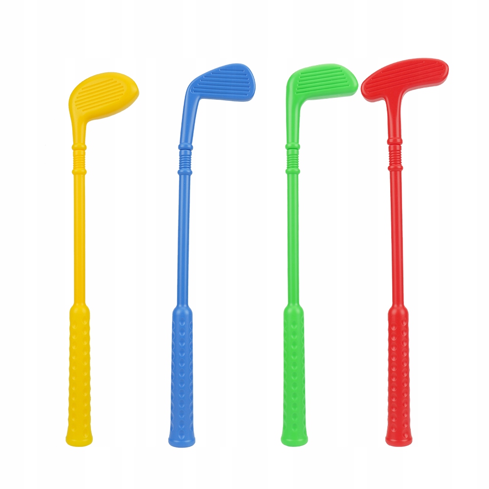 - Чотири ключки для гольфу мають правильну довжину та вагу для дітей, мають кути та виглядають як справжні ключки.