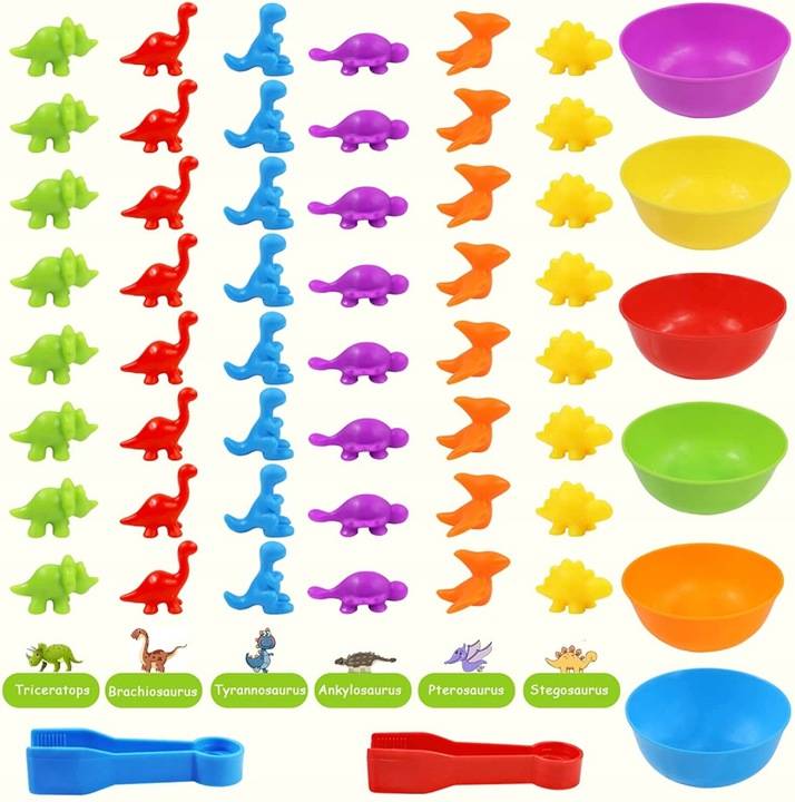 3. Потім ми намагаємося помістити всіх динозаврів у відповідні чашки, де колір динозавра ідентичний кольору чашки.