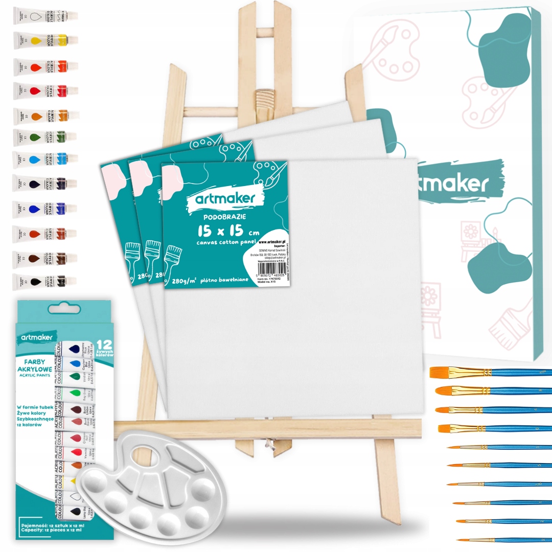 У нашому наборі є все необхідне, щоб почати малювати та творити. Ретельно підібрана композиція набору, яка включає дерев'яний мольберт, синтетичні пензлі, панно для живопису, палітру для малювання та акрилові фарби, надасть вам повну творчу свободу та дослідження різноманітних технік малювання. Усе це в одному наборі, готовому до використання та ідеальному як для початківців, так і для досвідчених художників.
