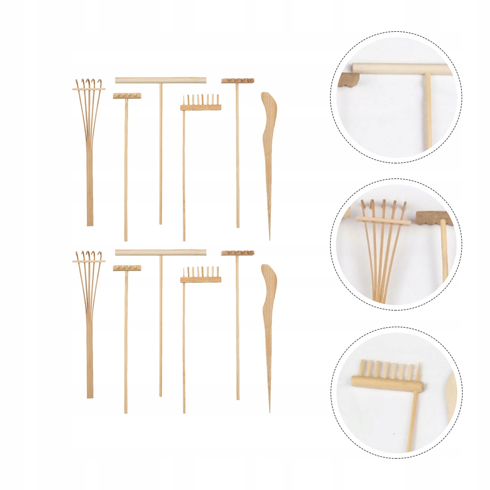 ✅Це набір міні-садових граблів Zen, виготовлених із натурального бамбука, з розумною структурою та відповідним розміром, які можна використовувати на пісочному чайному столику для художньої творчості. Набір повністю укомплектований і включає різні інструменти, які дозволяють створювати хвилі, доріжки та різні візерунки на пляжі. З цими наборами ви можете легко насолоджуватися озелененням пісочниці та комфортно проводити час.