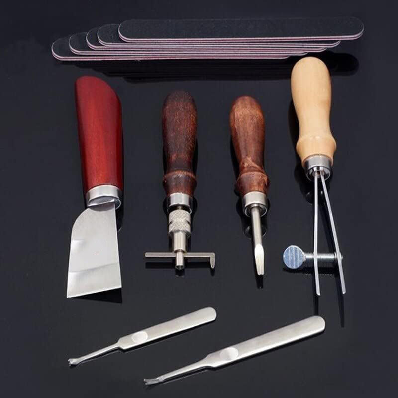 - 👞Цей набір містить майже всі інструменти для обробки шкіри та дуже повний.