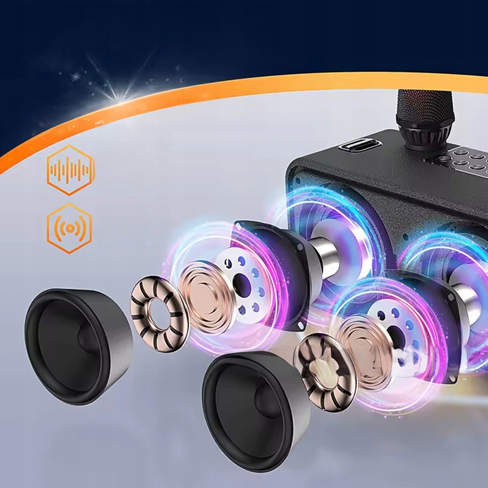Це багатофункціональний пристрій, оскільки він має багато функцій: мікрофон, динамік Bluetooth, караоке. Ви можете використовувати його як динамік Bluetooth, щоб задовольнити різні потреби, а також для караоке через Bluetooth, USB, карту TF або AUX.
