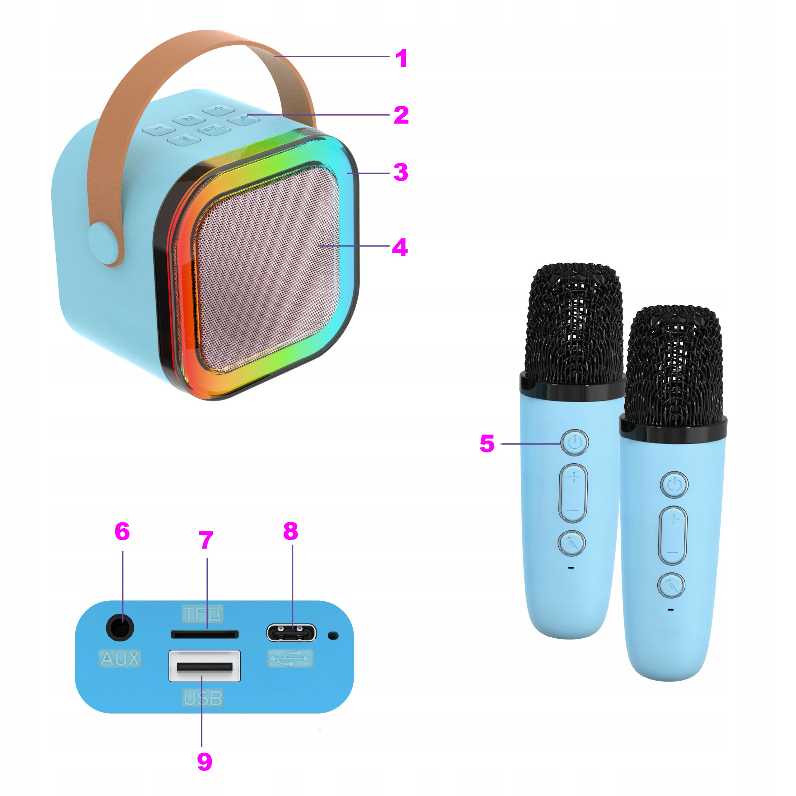 НАБІР ДЛЯ КАРАОКЕ БЕЗДРОТОВИЙ ПОРТАТИВНИЙ НАБІР RGB 2 МІКРОФОНА + ДИНАМІК