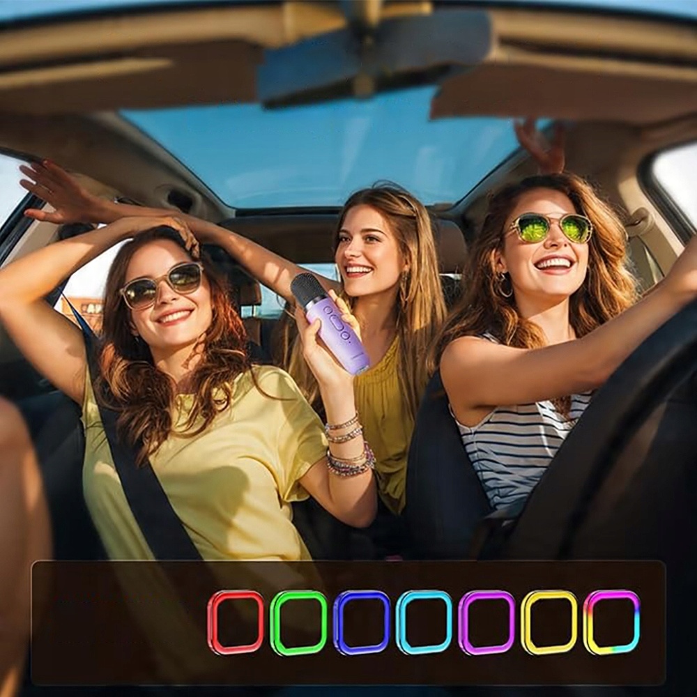 ✔️【Компактність і портативність, тривалий час відтворення】Портативна колонка для караоке та бездротовий мікрофон розроблені як компактні та легкі, тож їх можна легко носити з собою. Вбудована акумуляторна батарея забезпечує 3-6 годин відтворення, що робить його ідеальним для різдвяних вечірок, днів народжень, подій на відкритому повітрі, сімейних зустрічей або подорожей.