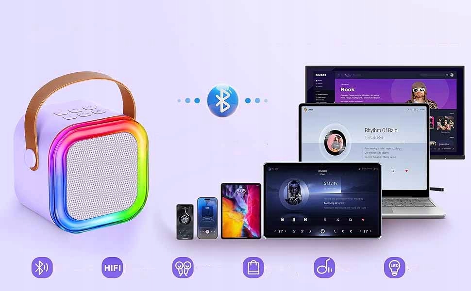 ✔️【Bluetooth 5.0 і широка сумісність】Дитяча караоке-машина оснащена найновішим оновленим інтелектуальним чіпом Bluetooth 5.0, який забезпечує надзвичайно стабільне бездротове з’єднання з низькою затримкою в межах 10 м/32,8 футів, забезпечуючи високоякісний звук без втрат. Ця караоке-система з мікрофоном також підтримує картку Micro TF, USB-флеш-пам’ять і роз’єм AUX-in, що робить її сумісною з різними пристроями, такими як мобільні телефони, iPad, планшети, комп’ютери та телевізори.